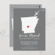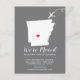 Modern moving announcement featuring the state of ARKANSAS, with a red heart & aeroplane set on a grey background. The background colour can be changed easily by clicking personalise and then click to customise further to view our colour picker. From there you can also move the aeroplane & heart! Contact our shop if you require help or need another state.