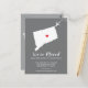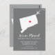 Modern moving announcement featuring the state of CONNECTICUT, with a red heart & aeroplane set on a grey background. The background colour can be changed easily by clicking personalise and then click to customise further to view our colour picker. From there you can also move the aeroplane & heart! Contact our shop if you require help or need another state.