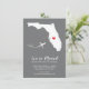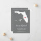Modern moving announcement featuring the state of Florida with a red heart & aeroplane set on a grey background. The background colour can be changed easily by clicking personalise and then click to customise further to view our colour picker. From there you can also move the aeroplane & heart! Contact our shop if you require help or need another state.