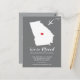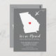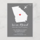 Modern moving announcement featuring the state of GEORGIA, with a red heart & aeroplane set on a grey background. The background colour can be changed easily by clicking personalise and then click to customise further to view our colour picker. From there you can also move the aeroplane & heart! Contact our shop if you require help or need another state.