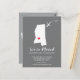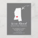 Modern moving announcement featuring the state of MISSISSIPPI, with a red heart & aeroplane set on a grey background. The background colour can be changed easily by clicking personalise and then click to customise further to view our colour picker. From there you can also move the aeroplane & heart! Contact our shop if you require help or need another state.
