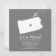 Modern moving announcement featuring the state of Pennsylvania with a red heart & aeroplane set on a grey background. The background colour can be changed easily by clicking personalise and then click to customise further to view our colour picker. From there you can also move the aeroplane & heart! Contact our shop if you require help or need another state.