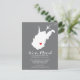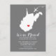 Modern moving announcement featuring the state of WEST VIRGINIA with a red heart & aeroplane set on a grey background. The background colour can be changed easily by clicking personalise and then click to customise further to view our colour picker. From there you can also move the aeroplane & heart! Contact our shop if you require help or need another state.