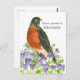 A moving announcement postcard decorated with an American robin with purple violets illustrated with ink and painted with watercolor. Inspired by the state bird and state flower of Wisconsin. Enjoy the Badger State! You can edit the text with your details.