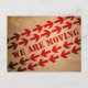 Rows of red orange arrows align diagonally across this moving announcement. The background is meant to look like a cardboard box with the text "We Are Moving" stamped in between the rows of arrows. One of the arrows continue onto the reverse to point to a name and new address or any other information. Great for a personal or business move. Available with matching products.