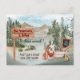 Moving Cute English Bulldog Dog New Address Pines Announcement Postcard set in your new neck of the woods is the perfect way to let your friends and family know where you are. This woodland scene features a welcoming scene with a beautiful blue sky, mountains, loads of pine trees, and a wooden sign with your familly and dog's name. This Cute English Bulldog Dog retriever has it all figured out. He's got his red buffalo check bandanna and a new side hustle. He's selling sticks for other dogs to play with and a friendly squirrel to keep him company. The back of the post card features a woodland background for your address and email and an invitation to come visit- and bring treats. This watercolor hand painted art sets this design apart. ALL of the text is editable, even the dog's comment, so make it your own with your name and new address and comments. You will find this woodland moving announcement with a friendly Cute English Bulldog along with loads of other breeds in our collection WOODLAND PINE MOVING ANNOUNCEMENTS WITH DOGS in our store. Designed by our stationary artist Nancy Lambert whose dogs love to chase squirrels.