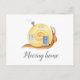 Moving home advance notice of moving to new house. Let friends and family know of your upcoming house move with these cute whimsy snail moving home art moving house postcards. Personalise with your own moving date, name and new address details. Cute snail with a home to move watercolor art by Sarah Trett for www.mylittleeden.com on zazzle.