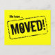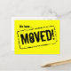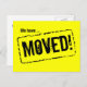 Moving postcards with attention getting colours. Bright yellow and black design with rubber stamp print. Custom moving text; We have moved! Add your new address on the back. Modern moving cards for home and business.