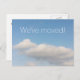 Moving postcards with blue sky and white clouds. Custom move text; We have moved! Add your new address on the back. Modern cards for new home and business location. Simple clean design.