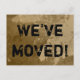 Moving postcards with distressed cardboard box design. Custom move text; We have moved! Add your new address on the back. Modern cards for new home and business location.