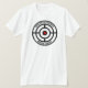 Mark yourself as a moving target. Two warnings appear on the outer ring of the shirt. "Attempting to shoot or otherwise strike this target while worn may result in severe bodily harm or DEATH to the wearer" and "Attempting to shoot or otherwise strike this target may result in unfavourable retribution".