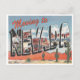 Moving to Nevada change of address notification based on a vintage "Greetings" postcard style. The letters are filled with Nevada scenes and mountains and cactus are the background. Edit your new address information on the back.