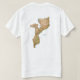 The front of this t-shirt bears a small Mozambican flag with its familiar motif within a red triangle with green, black and yellow bands to the right, while the back displays a relief map of Mozambique. Available on t-shirts, sweatshirts, polos, long-sleeves and more.