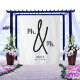 Mr. and Mr. gay wedding backdrop personalised with their surname or names, and the event date or established year. Design in black and white with an elegant yet modern style for a wedding party, reception, or as decoration for the ceremony.