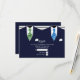 Mr and Mr, Suit and Tie Gay Wedding / civil ceremony RSVP invitations .. navy suits and small shamrock detail to the tie ideal for the civil ceremony / wedding .. designer gay wedding invitations come complete with white envelopes.. gay wedding invites from Ricaso .. this is version 3 with a white strip instead of a faded one