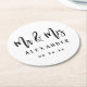 Mr and Mrs Black Brushed Script Wedding Monogram Round Paper Coaster