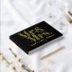 The sophisticated gold foil Mr. and Mrs. wedding guest book showcases a bold typography design, with the Mr. and Mrs. titles elegantly displayed in gold foil. The ampersand symbol is prominently featured, along with a circle containing a gold love heart instead of a traditional period. The backdrop of the guest book is a sleek black colour, adding a touch of elegance to the overall aesthetic. The back is covered with a photo of the couple.
