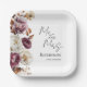 Mr. and Mrs. | Burgundy Floral Autumn Wedding Paper Plate