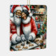 Sweet vintage Mr and Mrs Santa Claus (African-American) baking cookies in the kitchen. Cute ai art that gives you that nostalgic Christmas vibe. Place to put a personalised message on the back.