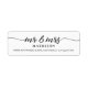 A unique and modern script Mr. and Mrs. style treatment is included on these return address labels, use them for your wedding thank you cards, holiday correspondences and everyday mail. Customise the family last name and address.