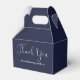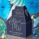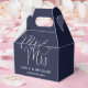 This navy blue minimalist elegant script wedding favour box can be personalised with your information in chic typography. Designed by Thisisnotme©