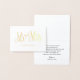 Mr and Mrs gold thank you card. Classic wedding Foil Card