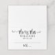 Modern Mr and Mrs wedding escort cards feature a modern black and white colour scheme with bold and playful handwritten calligraphy script typography with stylish scroll details. Personalise the casual yet elegant custom monogram text for your wedding day. Includes space to write a guest name(s) and table number.