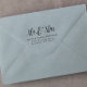Designed to coordinate with the Lea Delaveris Design newlywed collection, this return address stamp features a modern script Mr. and Mrs. The text is editable to include the address of the bride and groom. Makes a nice bridal shower or wedding gift too.