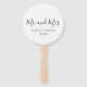 Simple photo wedding hand fan with a clean and minimalist design featuring an elegant touch with "Mr and Mrs" in script.  The backside has your favourite picture.  A modern black and white design that coordinates beautifully with any style of wedding.  These custom hand fans are a great way add a personal touch to your outdoor wedding.