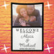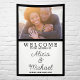 A vertical welcome banner featuring a photo of the future Mr and Mrs within a bold black border. Swirly script adds the finishing touch to this wedding welcome sign. To edit the text and change the photo click on the personalise button.