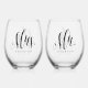 Mr. and Mrs. script newlywed personalised black Stemless Wine Glass
