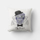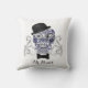 Meet Mr Bones; such a fun, ornate sugar skull wearing a black bowler hat, eye glass spectacle and a dickey bow. He's a real charmer in a lovely blue and white ornate pattern. An unusual throw pillow, great for a modern environment.