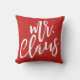 This adorable holiday throw pillow says "Mr. Claus" in a modern white handwritten script. Choose any colour background.