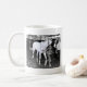 Mr. Jordan, a 4 year old roan or white solid thoroughbred by Kantharos being walked in the paddock by his groom before the inaugural running of the Frosted stakes at Parx Racing. Wearing a black shadow roll Mr. Jordan stops to pose for his photo to be taken. Photo is in black and white of this gorgeous racehorse.