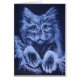 this is an acrylics painting of a little white cat done on a black background with green eyes