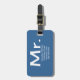 Mr. Luggage Tags are printed with Mr. across the front in white letters, with any 4 lines of personalisation. Include your name, address, phone number ... you choose the details! Personalisation will be printed in white. Features white stripes on the back. Background colour can be changed. Travel with confidence, knowing any misplaced belongings will return safely - perfect for suitcases, garment bags and more! Also comes in a version for the Mrs.