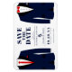 Let everyone know you two have settled on a date for your wedding with this modern save the date card featuring two navy suits. Personalise by adding your names, date and wedding location.