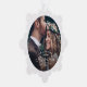 Send joyful holiday wishes as a new Mr. & Mrs! Celebrate marriage as newlyweds and share two of your favourite wedding pictures with a stylish custom photo holiday ornament card. All wording on this template is simple to personalise. (IMAGE PLACEMENT TIP: An easy way to position a picture exactly how you want is to crop it before uploading to the Zazzle website.) The modern minimalist black and white design features simply elegant script typography overlay and 2 photos of your choice. Family and friends will love displaying this unique customised hanging ornament card. Merry Christmas and cheers to merrily ever after!