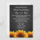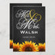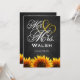 Mr. & Mrs. Black Chalkboard Sunflower Wedding Invitations---match the RSVP cards and more found below on this page. Compliment your sunflower wedding theme with these invitations that feature a black chalkboard texture as a background with Mr. & Mrs. in elegant script with vibrant sunflowers at the bottom of the front and back of each invitation.