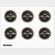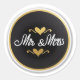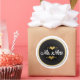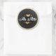 Minimal and timeless round wedding label in black-and-white calligraphy with tiny golden hearts. A classy touch for wedding favours, gift bags, or sealing envelopes.