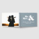 Mr. and Mrs. Simple Elegant Modern Minimal Dusty Blue Wedding Guest Book, with a heart-shaped custom photo on the front cover.This Simple blue and White Wedding Guest Book is an elegant and modern way to capture the memories of your special day. The design features a stunning blend of Eucalyptus Green and white, offering a sophisticated yet fresh aesthetic. The guestbook is fully customisable, allowing you to personalise the cover with the bride and groom's names and the wedding date, making it a meaningful keepsake. The spine of the guest book can be personalised with the couple's names and wedding dates in a subtle, tasteful font that enhances the book’s overall elegance. The ivory-white lettering with the dusty blue background creates a clean, timeless look that complements various wedding themes, whether rustic, modern, or minimalist. On the back of the guestbook, you can display your favourite photo, whether it’s a stunning engagement shot or a memorable moment from your time together. This personal touch makes the guest book even more meaningful, inviting your guests to write their well wishes and messages in a beautiful, personalised space. The design and layout of the guestbook create a lasting impression, offering you a place to collect heartfelt notes from your loved ones while also showcasing your unique love story.
