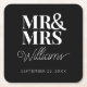 Mr Mrs Elegant Rehearsal Engagement Party Classic Square Paper Coaster. Personalise the template with your last name and date of your wedding, engagement or anniversary. Perfect for the rehearsal dinner, engagement party or wedding reception. Comes in blush pink, black, white, gold and brown options.