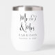 Custom thermal tumbler to celebrate your wedding or anniversary featuring "Mr & Mrs" in a large elegant script and an illustration of two hearts joined together. Add your name and wedding date in elegant modern typography.