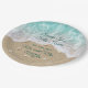 The playful and fun saying, Sandy Toes Salty Kisses... Mr. & Mrs. accent these paper plates on a background of turquoise blue water, beach sand, seashells, starfish and sand dollars, making it a perfect accent for your beach, tropical or destination wedding or rehearsal dinner. These paper plates are further personalised with the wedding date and the happy couple's new last name. If additional items are needed for your wedding just contact us at prettyfancyinvites@gmail.com with your request.