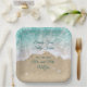 The playful and fun saying, Sandy Toes Salty Kisses... Mr. & Mrs. accent these paper plates on a background of turquoise blue water, beach sand, seashells, starfish and sand dollars, making it a perfect accent for your beach, tropical or destination wedding or rehearsal dinner. These paper plates are further personalised with the wedding date and the happy couple's new last name. If additional items are needed for your wedding just contact us at prettyfancyinvites@gmail.com with your request.