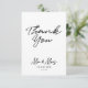 A simple minimalist white background and black script text wedding thank you card that can be customised to your surname and wedding date and thank you message. Customise the text and make it your own. Ideal wedding thank you cards for an elegant modern themed wedding.
