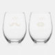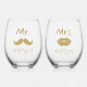 Mr & Mrs. Moustache Lips Personalised Wedding Stemless Wine Glass
