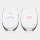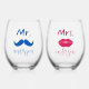 Mr & Mrs. Moustache Lips Personalised Wedding Stemless Wine Glass