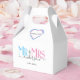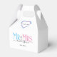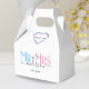 Celebrate your holy matrimony with this cute Mr. and Mrs. wedding party favour thank you box for wedding guests. Customise it by adding your last name / surname and wedding anniversary year date. Pink, blue and black elegant font with heart shape. Great for a bridal shower or anniversary / wedding reception dinner party for a husband and wife.