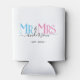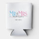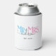 Celebrate your holy matrimony with this cute Mr. and Mrs. wedding party favour can cooler for newlywed couples. Customise it by adding your last name / surname and wedding anniversary year date. Pink, blue and black elegant font. Great for a bridal shower or anniversary / wedding reception dinner party for a husband and wife.